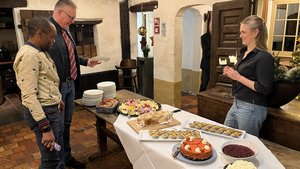 De menukaart bood de gasten twee opties: Wild, waaronder een hertenbiefstuk, of vis, in de vorm van Thaise viskoekjes; tevens was een vegetarische optie mogelijk. Tijdens het diner liepen de gesprekken uiteen van het praten over (nieuwe) banen en bezigheden tot het bespreken van nieuwe activiteiten voor het komende jaar. Bij het hoofdgerecht werd er nog een glas wijn of iets non-alcoholisch geschonken.